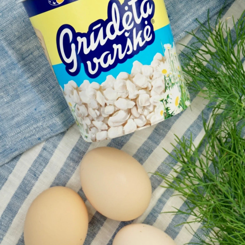- 350 g grūdėtos varškės (rinkausi Pieno Žvaigždžių)