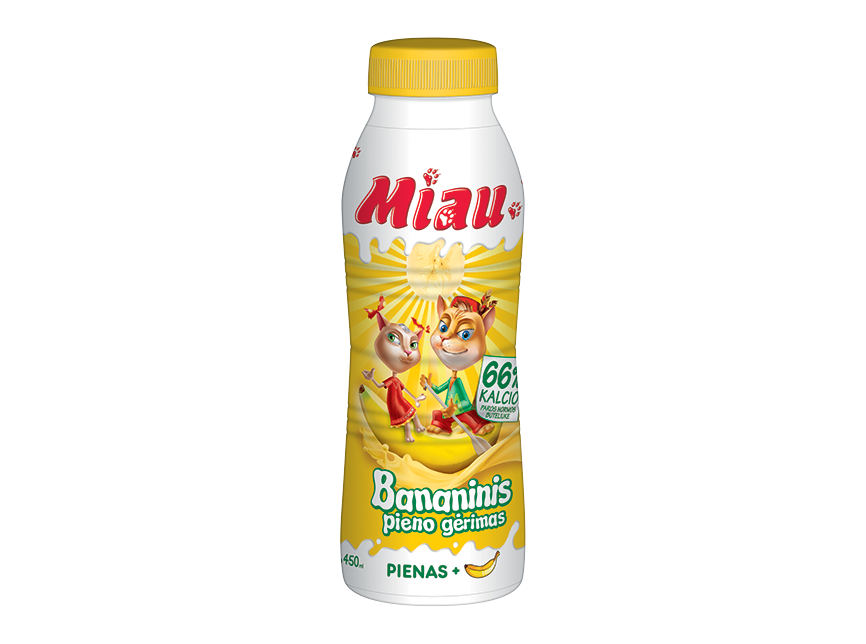 „Miau“ bananinis pieno gėrimas – tai gardus ir maistingas pasirinkimas. Saldus ir gaivus bananų skonis idealiai dera su švelniu pienu. Bananų skonis – tai užtikrintas pasirinkimas, nes jį mėgsta daugelis mažųjų smaližiautojų!