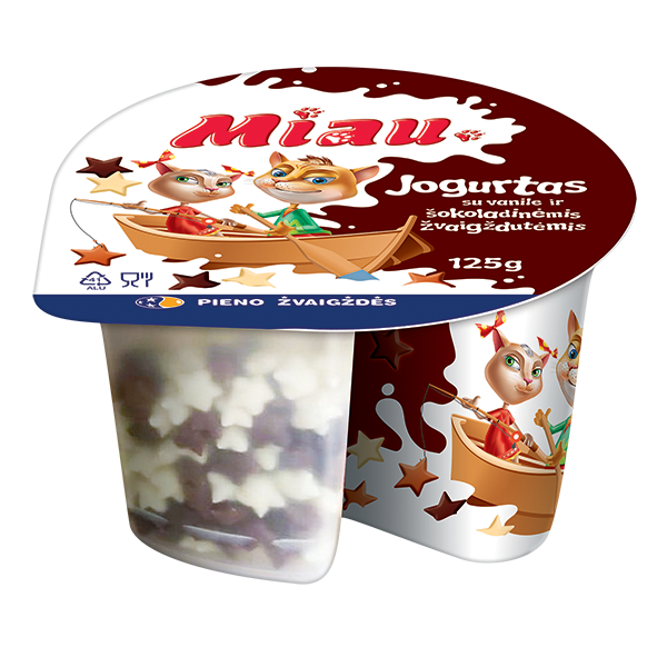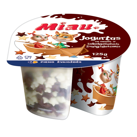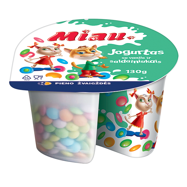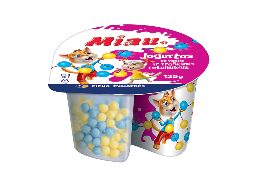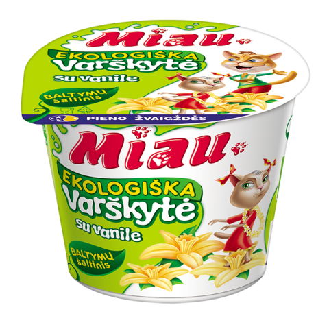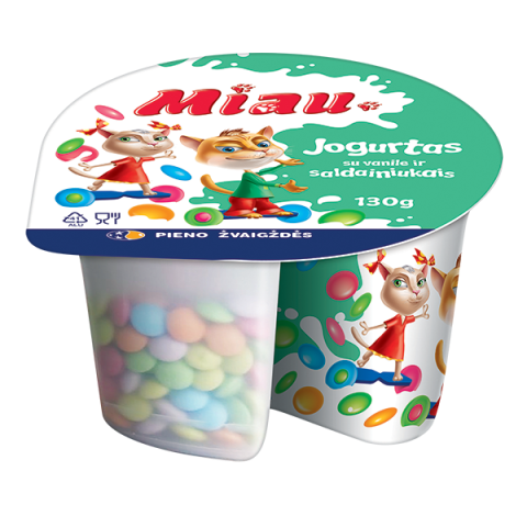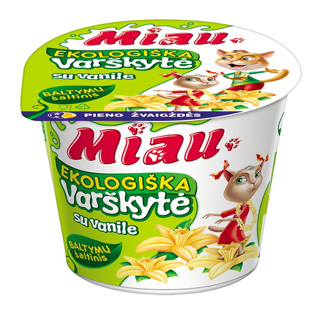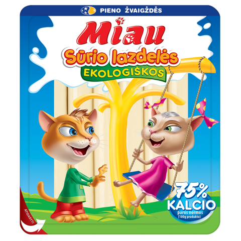 „Miau“ – tai skanūs ir maistingi produktai vaikams, kuriuos jie labai myli, nes... patys prisidėjo prie jų kūrimo! „Miau“ – tai „Pieno žvaigždžių“ specialistų pagaminti ir vaikų patvirtinti skoniai: jogurtai, sūrio lazdelės, gaivūs pieno gėrimai ir švelnios varškytės. Tai skanus ir patogus būdas suteikti vaikų mitybai daugiau baltymų. Pirkdami „Miau“ produktus savo mažiesiems, pasiimkite papildomą porciją ir sau – juk kiekvienas nusipelno nerūpestingai pasimėgauti gardžiausiais skoniais!