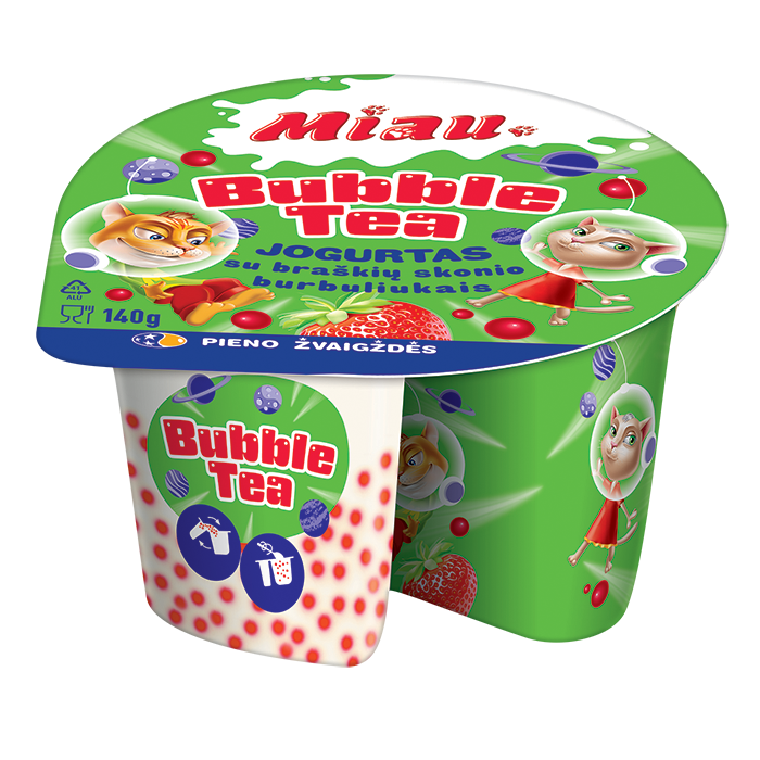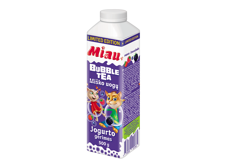 „Miau“ jogurto gėrimas, kuris sužadina smalsumą! Švelnios ir lengvos konsistencijos gėrimas su bubble tea miško uogų skonio sultiniais burbuliukais. Gaivus, žaismingas ir pradurtinas bifidobakterijomis!